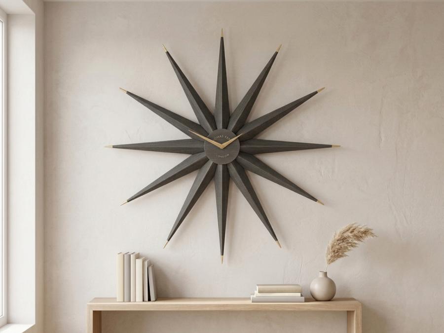 Make a striking impression with the Malibu Sunburst Wall Clock. Finished with eye catching gold accents and coordinating hands, it channels mid century elegance with a contemporary edge. Designed to stand out, it brings together refined craftsmanship and precise timekeeping - an effortless statement piece for modern interiors.