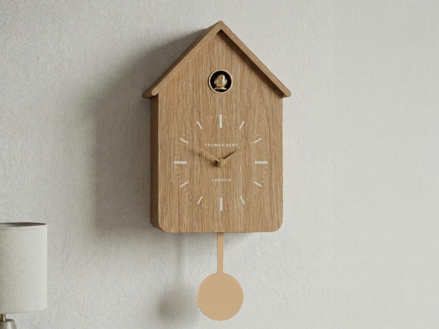 Bring contemporary charm to your interior with this cuckoo clock, finished in a refined wood effect. Its clean lines and understated detailing offer a modern take on a classic design, blending tradition with a fresh, minimalist aesthetic. On the hour, a cuckoo appears, accompanied by a cheerful dawn chorus that adds warmth and character to your space.