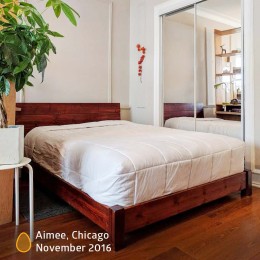 Absolutely gorgeous bed and easy to put together with 2 people. Thank you! It’s sturdy and seems like it will last forever. I love that it has real wooden slats screwed down instead of those ones that pop off and break. I got the space saver platform bed so I can fit storage underneath it and the base doesn’t stick out beyond the mattress, giving you more room in your bedroom (and you’re less likely to stub your toe on the corner!). Best big furniture purchase I’ve ever made. x