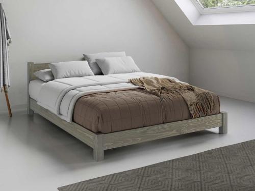 grey wash low wooden platform bed